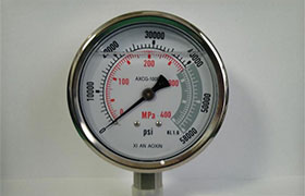 耐震压力表安装在液压增力气缸的测压接口,用于检测缸内液压油的压力变化,直接显示缸内工作压力的数值。
